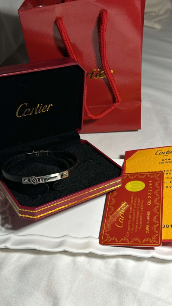• الاسم: اسوارة كارتير رجالي جلد أسود مع نقشة شعار Cartier