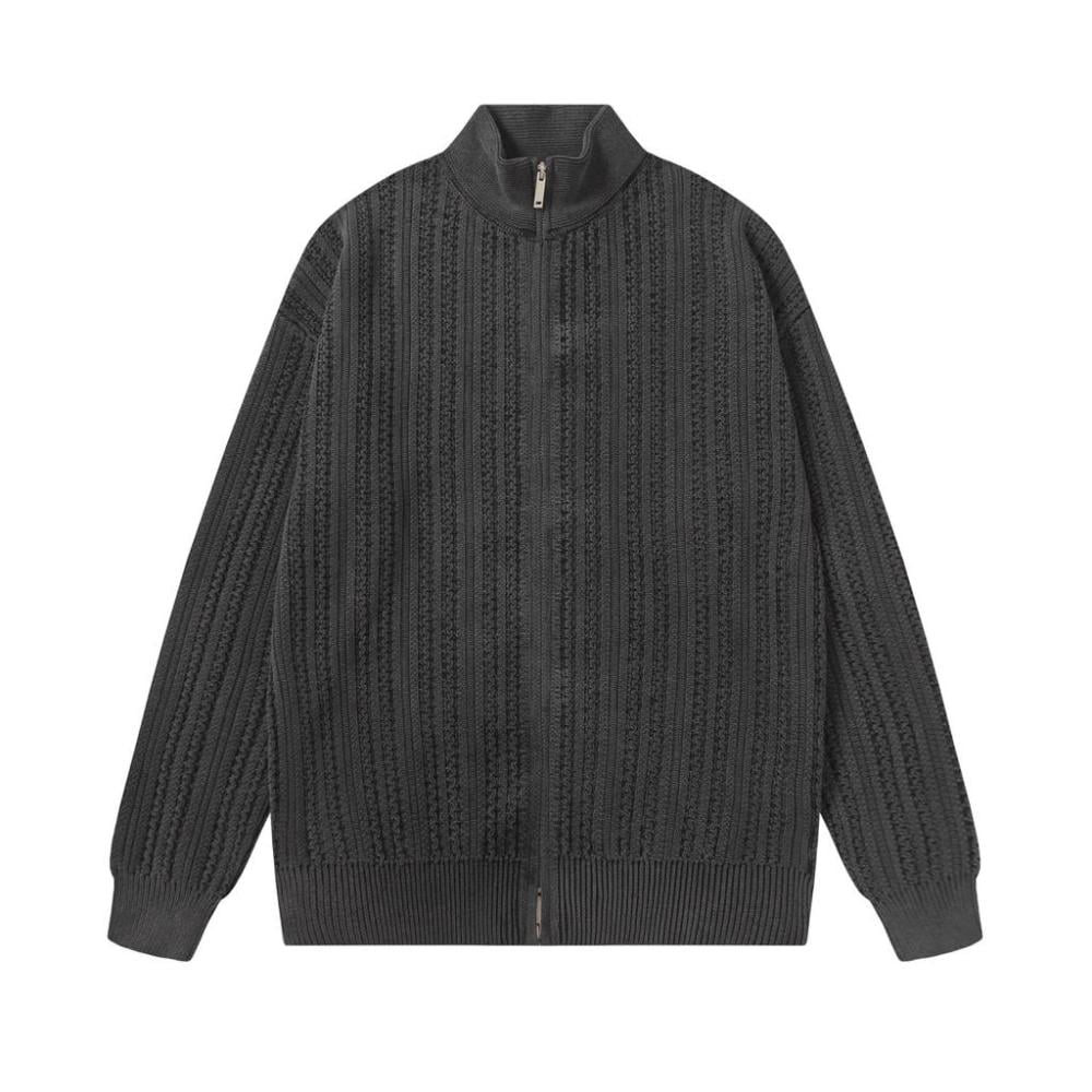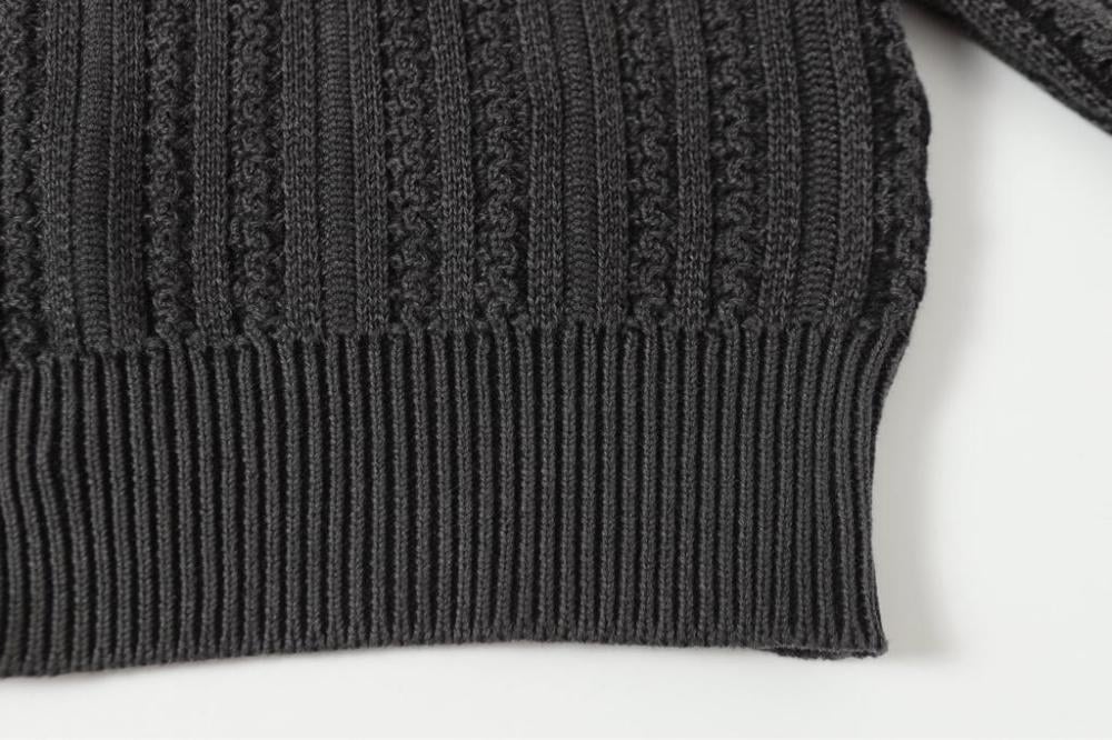 ياقة، أساور، وحافة سفلية بتصميم مضلع (Rib Knitting) لمظهر أنيق واحتواء أفضل للجسم.